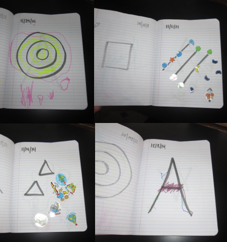 She seems to enjoy doing her journal. It is fun to see her way of thinking in how she interacts with her posts. For example, if the prompt was a circle she could draw outside of the circle or inside, along the line, she could split it into sections, or she could do one design inside and another outside. I am looking forward to seeing how her entries develop overtime.