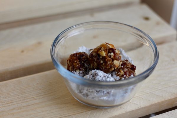 Raise your hand if you have no idea what a sugarplum is… I had no clue, maybe something with plums? And sugar? A cake? They were our next dessert to try in The Beekman 1802 Heirloom Dessert Cookbook. They are delicious, healthy, and easy to make! A combination of roasted almonds, dried fruits, and honey is processed into yummy little granola like balls and rolled in confectioners sugar. I can see how there could be a ton of variations for this quick treat. You can switch up the nuts and dried fruits to a combo that you prefer. Its fancy for a dessert tray and versatile enough to take on a hike for a burst of energy.